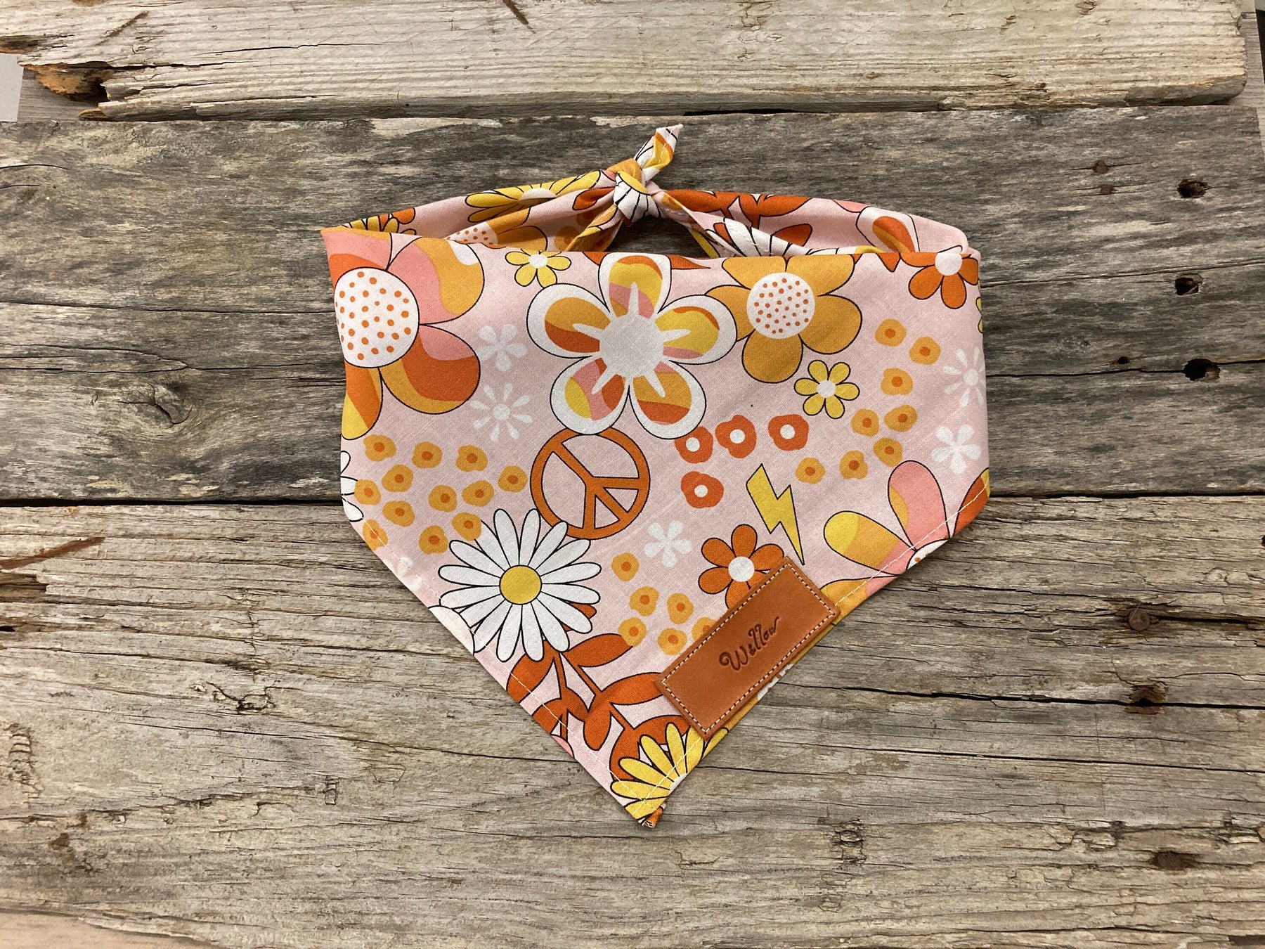 Dog Bandana Personalized Gift, Flower Power, Personalized Leather Tag, Dog Bandana, Dog Bandana Unisex Dog Bandana, Pet Toys, Dog Toys